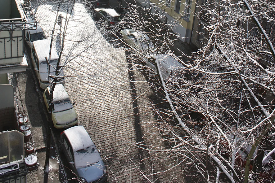 A rather quiet cobblestone residential street in an otherwise very busy Neukölln neighborhood. Thirty steps to the left there is some sort of construction going on; it looks like a giant basement is being built behind the former Kindl Brewery. On the opposite side of the street a hip bar that is always packed and I can see the DJ from my living room window. Past the bar and 500 meters further you're on Tempelhofer Feld. Down the street right from my front door you're on Karl-Marx-Straße, Neukölln's main commercial street.