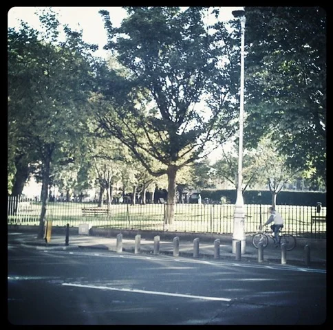 I always took the bus from Mountjoy Square, and I still love standing there in the morning, preferably in autumn, and see the impressive yet worn-down buildings lining the square wake up as my neighbours walk their dogs and the drug addicts from the nearby estate huddle on one of the benches as Polish joggers make their rounds… and all and everyone are swathed in that beautiful Dublin autumn morning light.