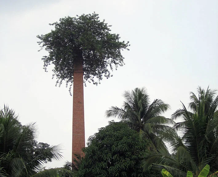 As we approach the island by boat, the chimney has the appearance of a ginormous tree, sprouting high above the coconut palms and temple rooftops. Out of the mouth of the chimney a bush of some sort is growing, like a head of curly hair.