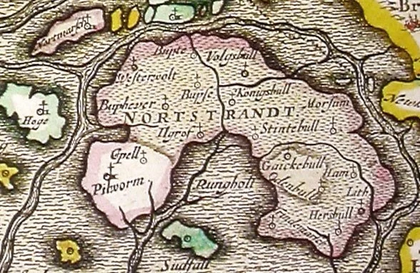 Then the big flood came. Storm from the west whipped the water in front of it, and on January 16, 1362, the dykes broke all across the North Sea coast. First the land around Rungholt filled like a bath tub, and then the sea just washed away the loose ground beneath the city. Rungholt sank into the North Sea, literally, and there are no indications for survivors in the contemporary chronicles. Today no one can really say how many people died in this catastrophe, which was recorded in history as the "Grote Mandrenke", the Great Drowning of Man. The marshes of the North Frisian "Uthlande", the outer land before the actual mainland, were devastated. 42 parishes of North Frisia, as documented in the church records, disappeared completely. Rungholt was devastated so completely that its existence and doom were were only documented in fairy tales and legends over many centuries.